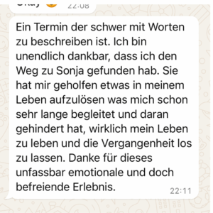 Du bist während des gesamten Prozesses nicht allein. Ich begleite dich zwischen den Terminen über WhatsApp – für Fragen, Impulse, energetische Unterstützung und Motivation, wann immer du sie brauchst.